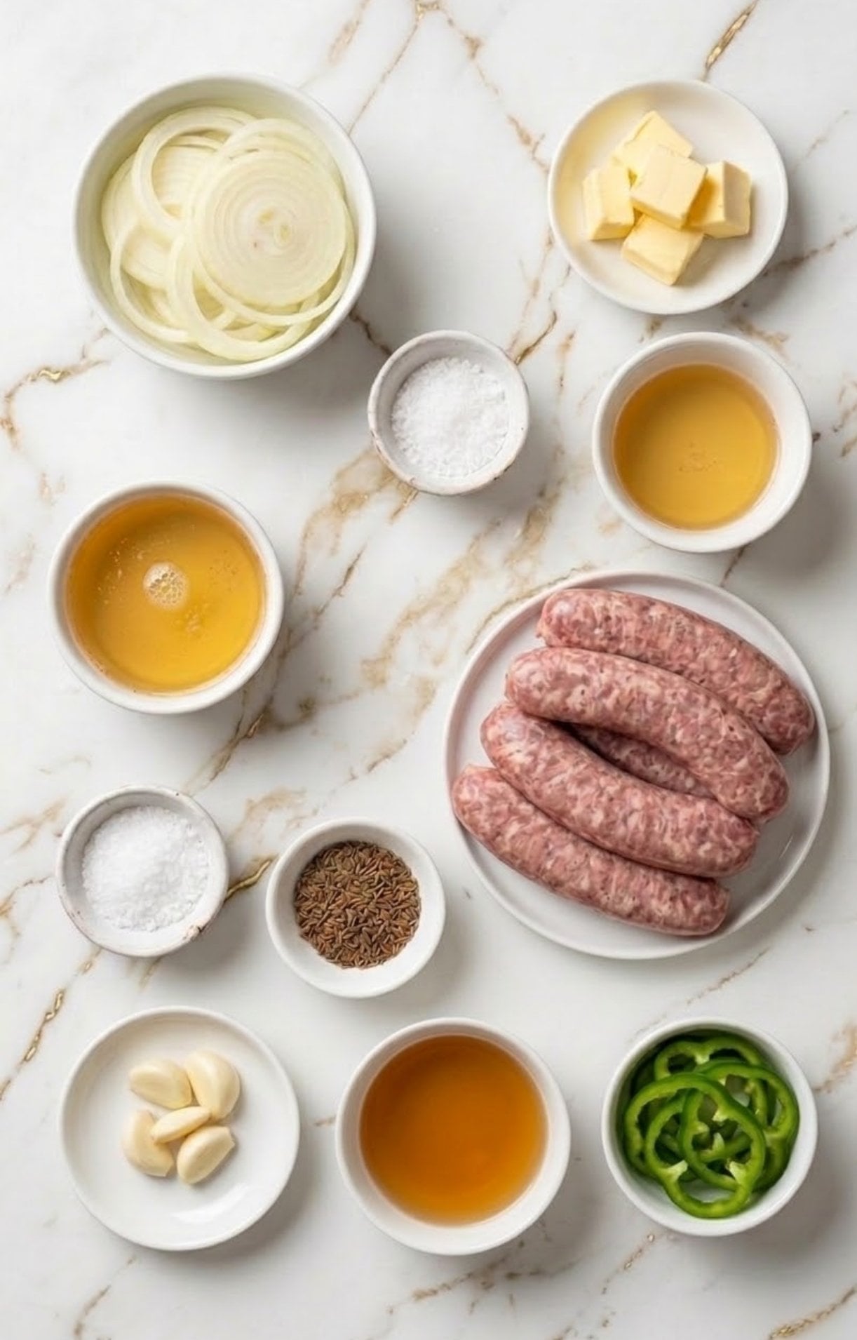 - Onions: Yellow or sweet onions work best. As they cook, they soften and create a base of flavor that complements the brats.