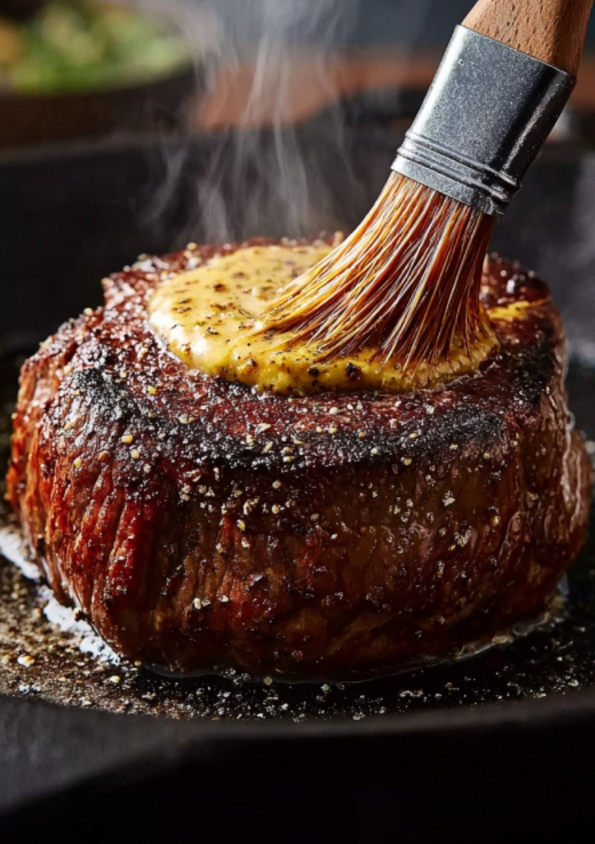 - Season beef fillet with salt and pepper. Sear on all sides in olive oil over medium-high heat for 2 minutes per side. Remove, brush with Dijon mustard, and let rest.