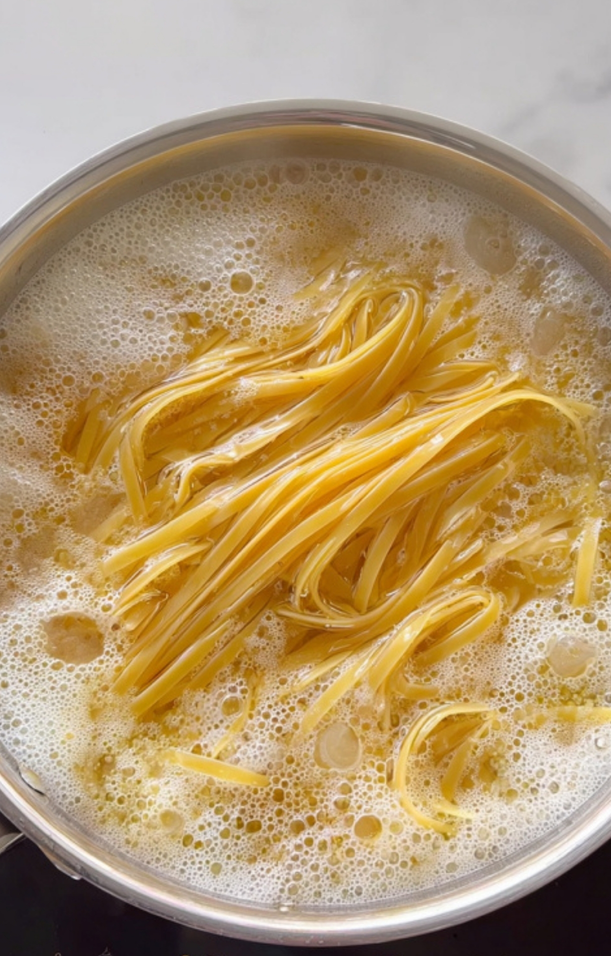 Boil a big pot of salted water. Toss in your pasta and cook till al dente. Right before you drain it, scoop out a cup of that starchy, salty pasta water (this is your sauce MVP).